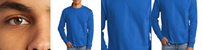 6-ounce, 100% cotton 99/1 cotton/poly (Ash) 60/40 cotton/poly (Charcoal Heather) 90/10 cotton/poly (Oxford Grey) Shoulder-to-shoulder taping Double-needle sleeves and hem Champion C logo on left sleeve Tag-free label