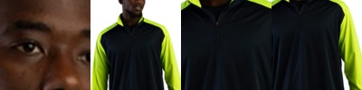100% polyester smooth knit with color secure(r) technology on front and back panels * color secure(r) technology prevents dye migration * 92% polyester /8% spandex pinhole mesh inserts for breathability * Wicks Moisture * Tag-free label * Two-button placket * Contrast color inserts and piping * Raglan sleeves * Longer length