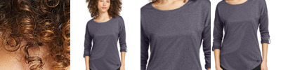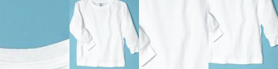 5.5 oz., 100% organic cotton fiber; Made in USA; Shoulder seam clean-finished with self-fabric tape; Side-seam construction; Double-needle coverstitched seams; Tear away label; External woven clamp label;