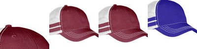 100% cotton twill two front panels; Soft mesh nylon back panels; Heavy enzyme wash; 6-panel; Unstructured; Low-profile; Two contrast color stripes on soft mesh side panels; Self fabric closure with silver sliding buckle and tuck in tunnel; Eyelets and button heavy raised contrast color stitching; Pre-curved visor ;