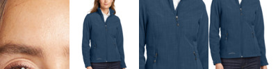 Gear up for the office or weekend adventure in this water-resistant, breathable soft shell that features a subtle crosshatch texture. 3000MM fabric waterproof rating. 3000G/M2 fabric breathability rating. Reverse coil zippers, front zippered pockets, adjustable tab cuffs with hook and loop closures and an open hem. Princess seams and contrast Eddie Bauer logo embroidered on hem. Made of a 100% polyester woven shell bonded to a water-resistant laminated film insert and a 100% polyester fleece lining.
