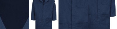 8 oz., 70% cotton, 30% polyester twill; 14" wide centre pocket with reverse contrast trim; combined pen pocket; metal eyelets secure 39" contrast fabric ties; neckband with gun metal buckle fastening for height adjustment; reverse contrast denim top centre pocket; 34" L x 28" W; Oeko-Tex® Standard 100 certified; WRAP certified;