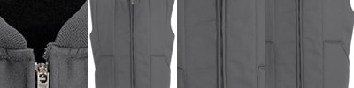 - Self-fabric collar with 7" locking zipper