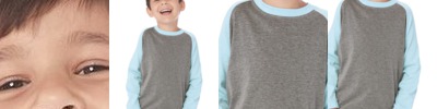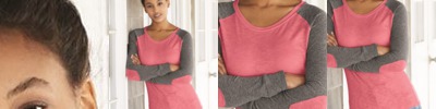 - Contrast-color 1x1 rib collar and raglan sleeves