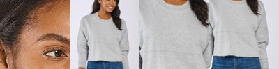 - Rib knit at cuffs and crew neck