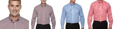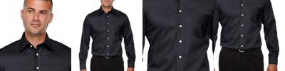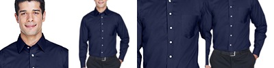 3.4 oz., 55% cotton, 45% polyester broadcloth; true non-iron performance straight from the dryer; stain release finish; fine yarn count shirting with pearlized buttons; patented pucker-free taped seams; specially fused collar, cuffs and placket; split back seam with bias cut back yoke; classic fit for professional appearance; rolled button-down collar; adjustable "Comfort Collar" gives up to an inch stretch at neck; left-chest pocket;