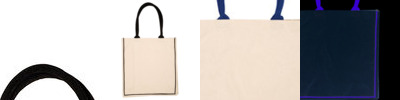 - Reusable tote bag made of Laminated Jute with 10 oz. Cotton Canvas piping.