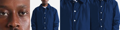 - Metal snap closure at collar stand and welt pockets