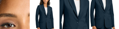 Inspired by modern suiting, this polished, professional blazer delivers all-day comfort while performing with moisture wicking, an odor-fighting finish and easy-moving stretch. Fabric+Weight 6.8-ounce, 57/43 polyester/Elasterell-P with Sorona ® warp knit Features+Benefits Unlined for a lightweight feel Notched lapel collar 1-button single-breasted blazer 3 decorative horn tone cuff buttons Front jetted flap pockets Single back vent