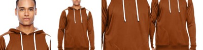7.7 oz., 100% polyester interlock double knit; peached finish on interior for added comfort; 100% polyester tricot large hole mesh lining in hood; contrast inserts at front shoulders; zippered front welt pockets; flat White 3/4" drawcord; 2 1/2" rib knit hem and cuffs;