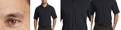 4.8 oz., 100% micro-textured polyester knit; Anti-bacterial; Moisture-wicking; Relaxed fit; Flat-knit collar; 3-button placket;