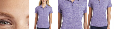 Our color-locking polo has a soft hand, wicks moisture, resists snags and is energized with an allover heather pattern. 4.1-ounce, 100% polyester jersey with PosiCharge technology Removable tag for comfort and relabeling Self-fabric collar Taped neck 4-button placket with dyed-to-match buttons Princess seams Set-in, open hem sleeves Curved drop tail hem