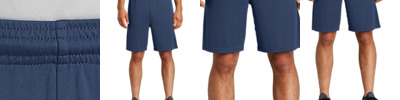 Two layers of 100% polyester wicking knit ; Wicks moisture away from the body ; Full-cut ; Fully reversible ; Each layer hemmed separately for embellishment ; 9-inch inseam ;
