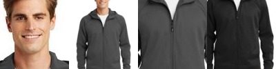 100% polyester, all season soft shell; Wind resistant; Water resistant, DWR finish; Breathable; Thumbhole cuff feature for secure fit ; Auto lock zipper with easy grab puller; Media port; 4-way stretch; Media port; Adjustable three-piece hood designed to contour for a comfortable fit; Zippered chest and hand pockets;